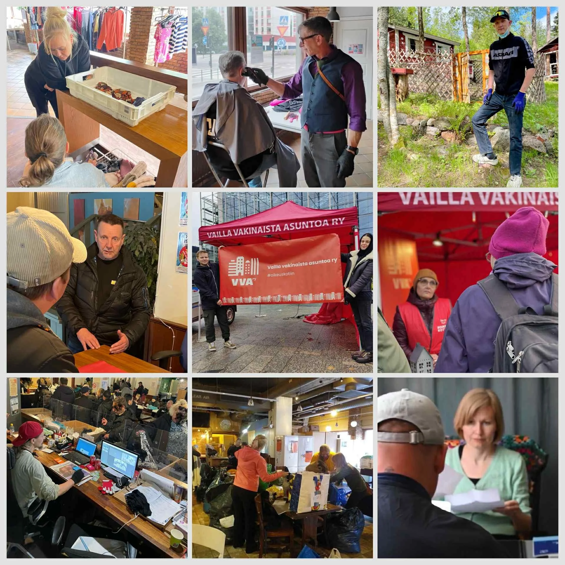 Vva ry:llä on nelisenkymmentä palkattua työntekijää, joista joka neljännellä on omakohtainen kokemus asunnottomuudesta tai sen lieveilmiöistä. Toiminnassamme on myös muuten mukana, esimerkiksi vapaaehtoisina, työkokeilussa tai kuntouttavassa työtoiminnassa laaja joukko asunnottomia tai asunnottomuutta kokeneita henkilöitä. Osallisuus ja vertaisuus ovat meille sekä tärkeitä arvoja että käytännön arkea.